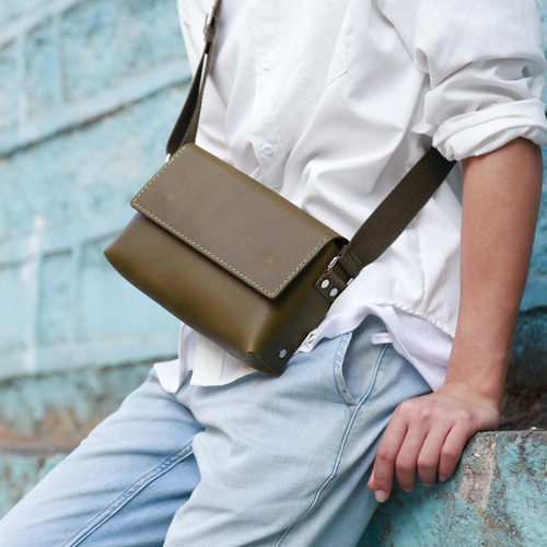 スクエアショルダーバッグオーダーメイド革製品「JOGGO」。