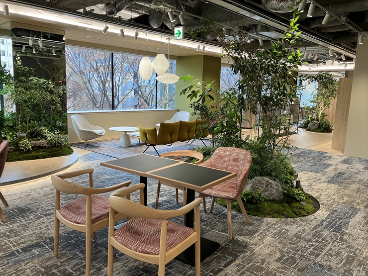 2社でシェアグリーンが際立つ統一感のあるオフィスデザイン事例 - オフィスデザインの株式会社ワーク。