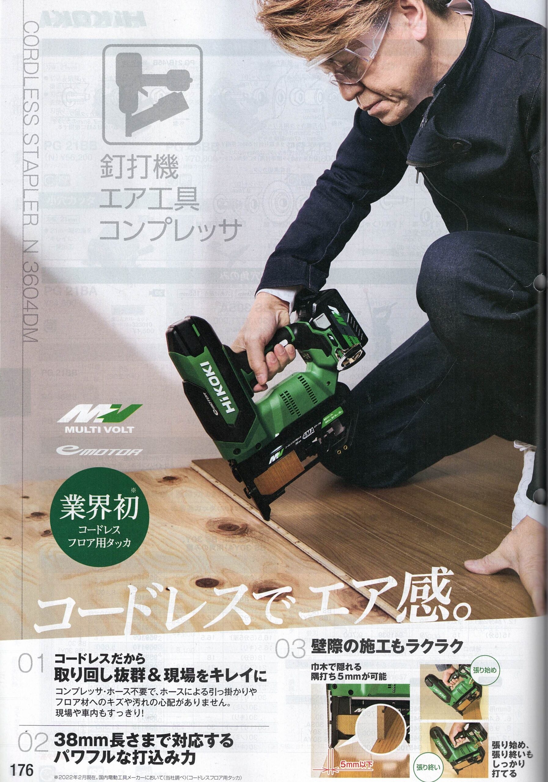 内装は完結‼︎これでもコンプレッサ使いますか⁉︎コードレスフロア用タッカ N3604DM HIKOKI・ハイコーキ エア機と実演比較。