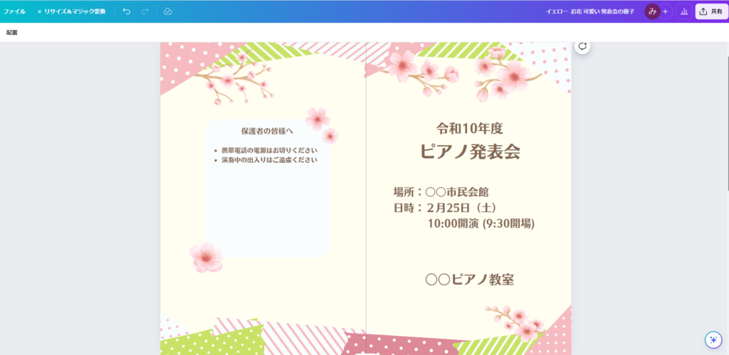 コンサートプログラムテンプレートでおしゃれな定期演奏会プログラム・音楽会・クラシックコンサートデザインを無料で印刷作成!Canva。