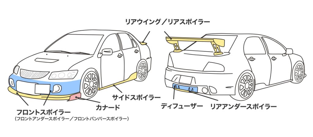 エアロパーツってなに?つけた方が良い?いくらかかる?その効果と種類まとめ - クルマのわからないことぜんぶ車 初心者のための基礎知識norico ノリコ。