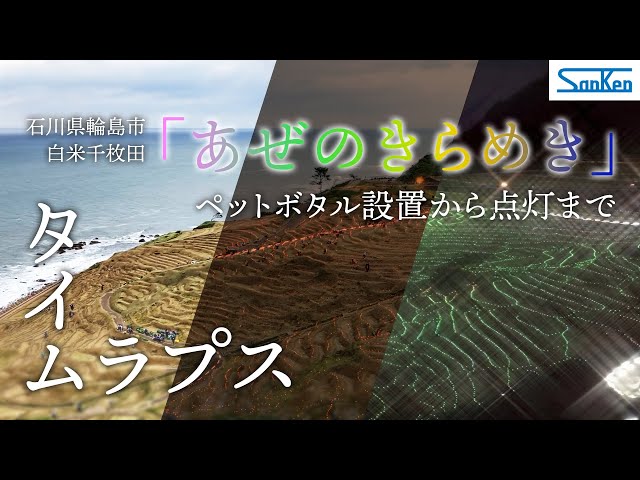 タイムラプス 輪島市白米千枚田「あぜのきらめき」 ペットボタル設置から点灯まで サンケン電気- YouTube。