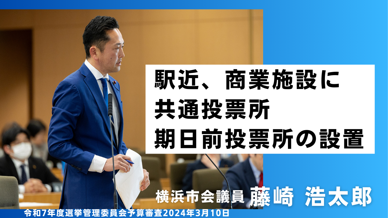 駅周辺や商業施設に共通投票所、期日前投票所を。選管R7予算。藤崎浩太郎。