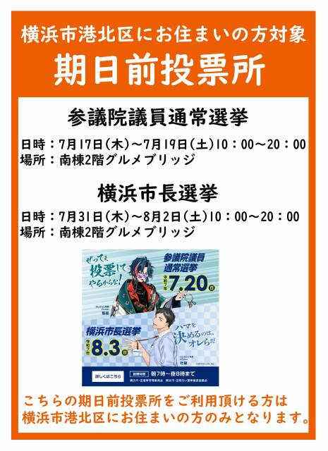 ららぽーと横浜」に新たな期日前投票所を設置 参院選・横浜市長選挙都筑区 - いそべ尚哉 イソベナオヤ選挙ドットコム。