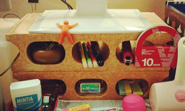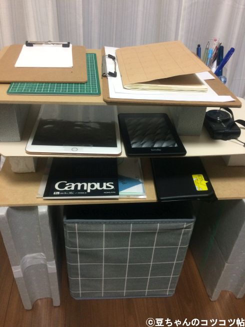 ダイソーの発泡ブロックを使って収納家具にカウンターを手早く増設けちは生活の知恵。