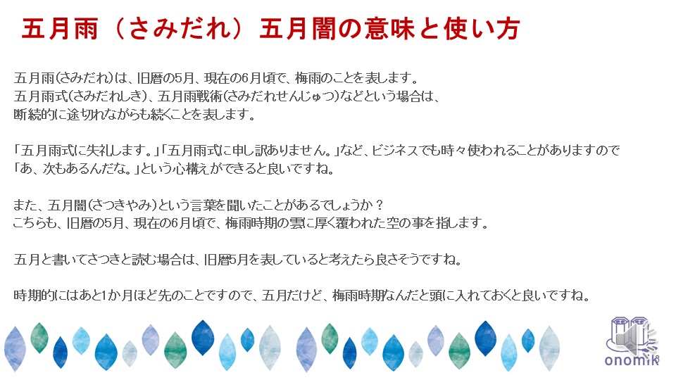 なぜ6月の雨を「五月雨」という?ビジネス用語「五月雨式にすみません」も実は粋!?意味や例文を解説暮らしの歳時記All About。