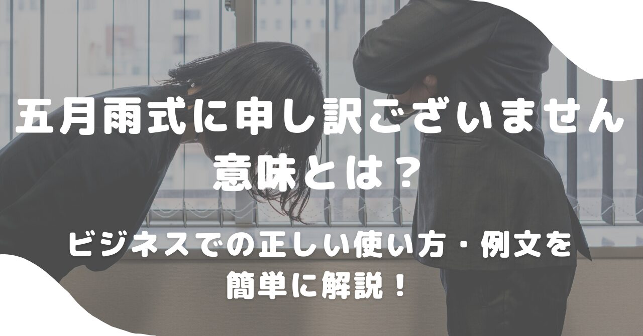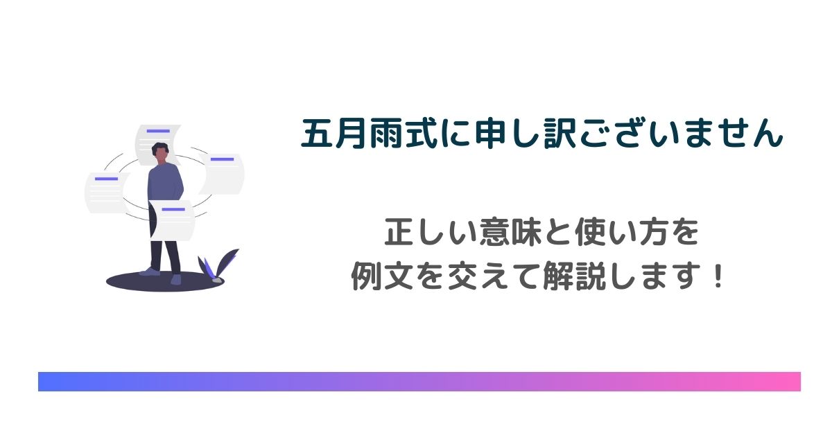 例文付き 「五月雨に申し訳ございません」の意味やビジネスでの使い方・言い換えまで紹介ビジネス用語ナビ。
