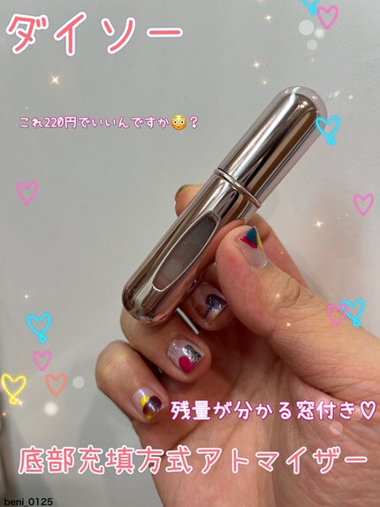 LIPS リップスon X: "これは最強アイテム👀❤︎ダイソー 底部充填方式アトマイザー 220円 税込 ぱっと見は普通のアトマイザーなんだけどれど底の部分から簡単に香水を入れられるすごいアイテム😳こんなアイテムがあれば気になった香水を気軽に持ち運びもできますよ。