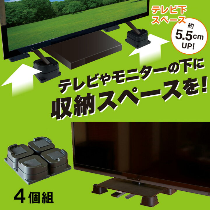 テレビの高さをあげる足 AKO-09 4個組 テレビ 底上げ 台 ブロック 脚 黒 PC作業負担軽減 肩こり 姿勢 収納スペース 隙間収納 小物整理リモコン 小物置き : アイデアグッズのララフェスタ - 通販 - Yahoo!ショッピング。