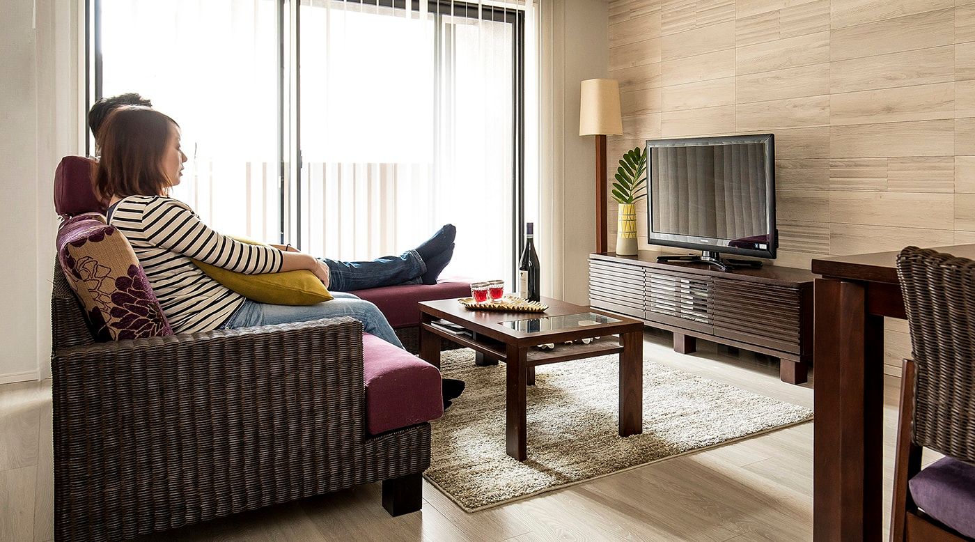 基本はテレビとソファの配置から!見やすい&快適なリビングのベストレイアウトUP LIFE毎日を、あなたらしく、あたらしく。Panasonic。