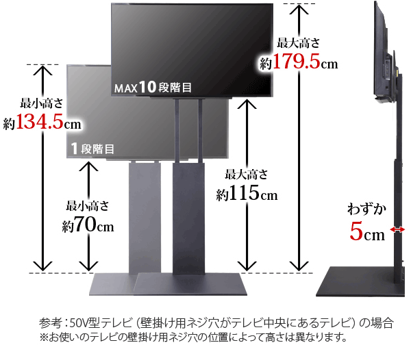 目線に合わせてテレビを置く高さを調節できるテレビ台。