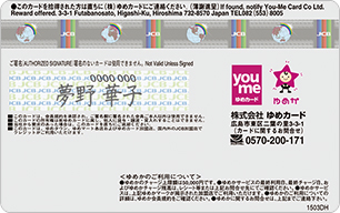 カードご利用上の注意ゆめカード。