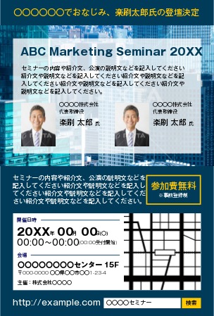セミナー・講演会のチラシ無料テンプレート・デザインサンプル - ネット印刷グラフィック。
