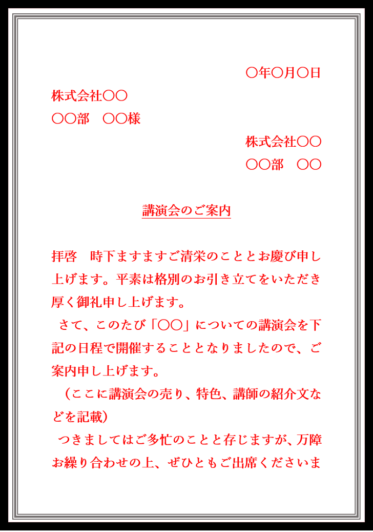 シンプルな講演会の案内状の例文と書き方・無料テンプレート📑無料ダウンロード!テンプレルン📑無料ダウンロード!テンプレルン。