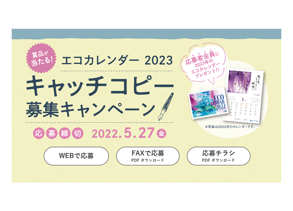 応募者プレゼント多数ご用意!お正月休みにキャッチコピーを考えて過ごしませんか?3万円分・1万円分のグルメセットがあたるかも!「エコカレンダー2026」キャッチコピー募集中日本テクノ株式会社のプレスリリース。