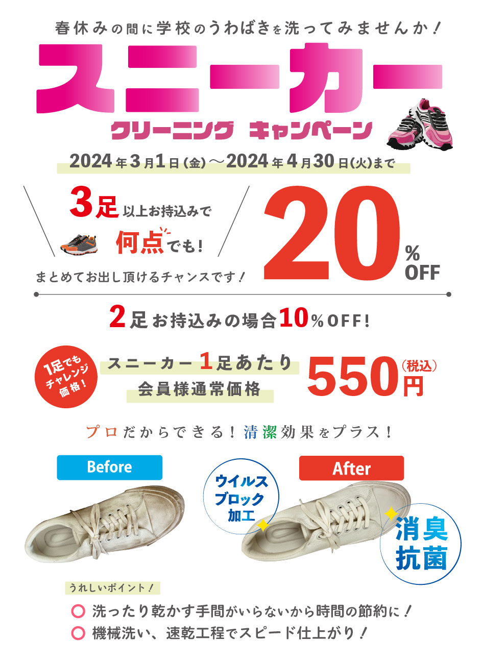 スニーカークリーニングキャンペーン!株式会社ワゴードライ。