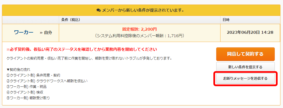 クライアント 契約しない応募者への対応について 固定報酬制、時間単価制クラウドワークス。