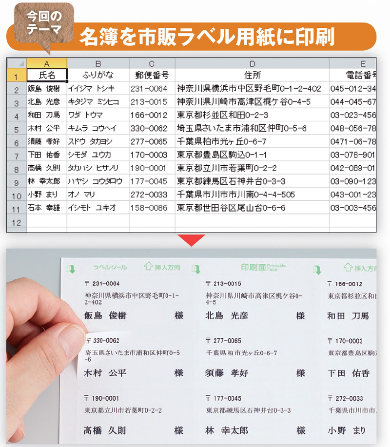 Excelのアドレス帳から、Wordの差し込み印刷を行いラベルに印刷する:Excel入門。