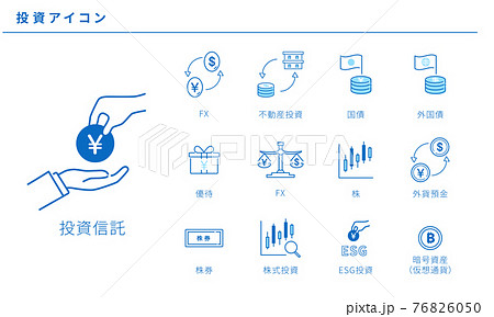いろいろな投資のシンプルアイコンセット、ベクター素材、青色のイラスト素材76826050- PIXTA。
