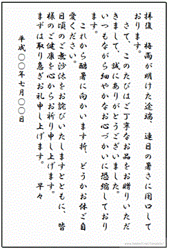 お礼状 お中元・お歳暮 ビジネス用はがき例文即日印刷プリントメイト。