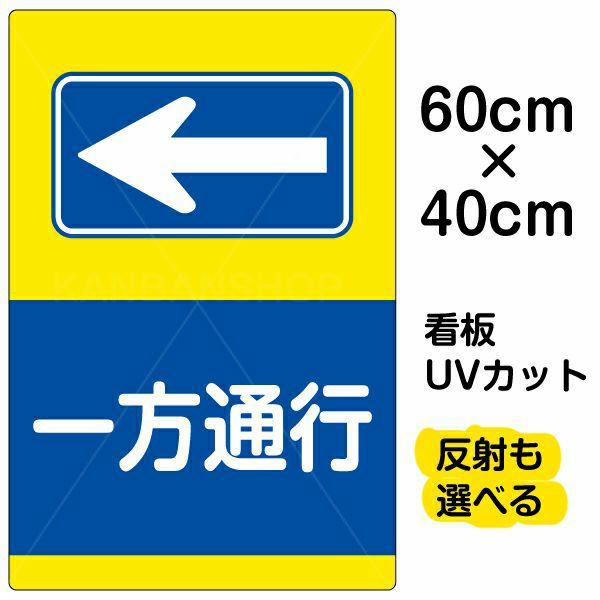イラスト看板「一方通行 ←」中サイズ 60cm×40cm取付穴6ヶ所あり 表示板公式看板ショップ。