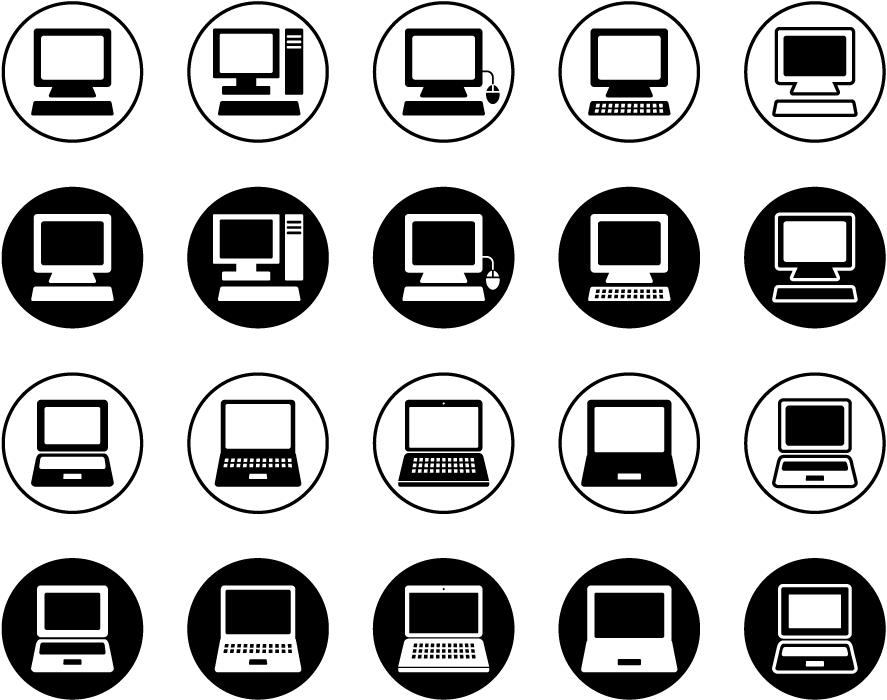 シンプルなノートパソコンとデスクトップの線画とシルエットのアイコンセット Stock VectorAdobe Stock。