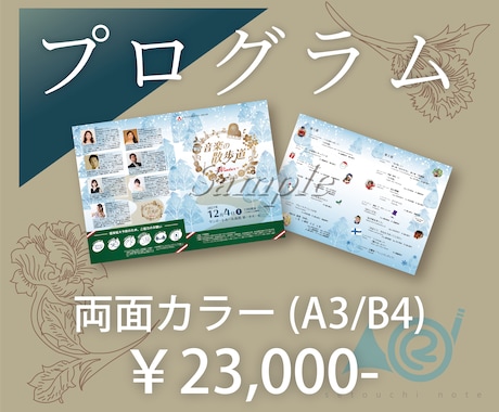 フルカラー♪演奏会・発表会プログラムデザインします 折パンフ見開きA3 B4サイズです。 二つ折りor三つ折りココナラ。