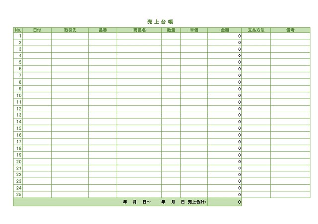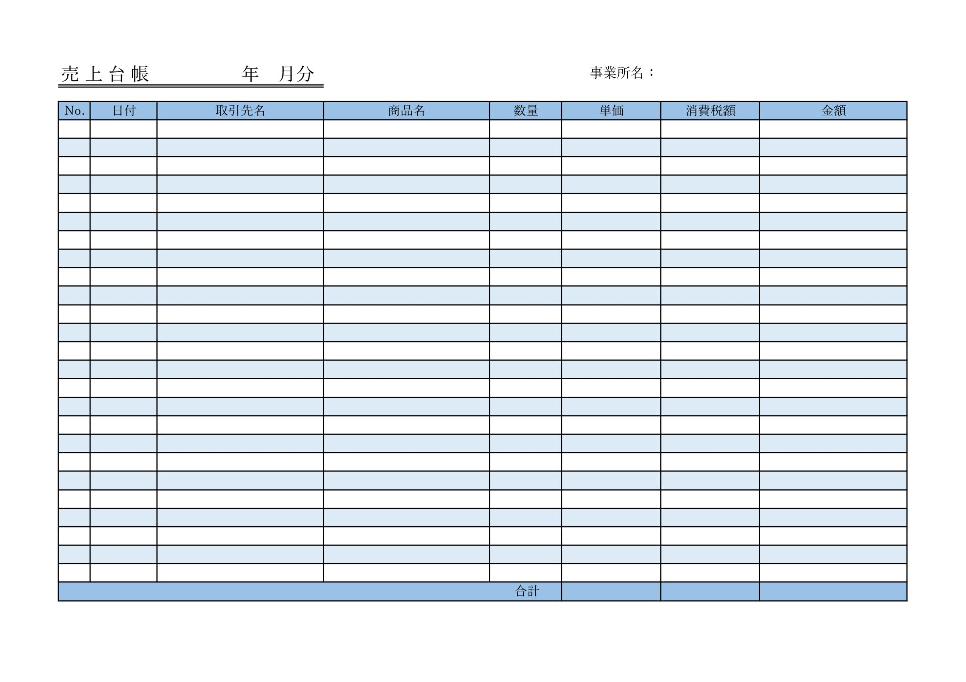 個人事業主や飲食店の方におすすめ「売上台帳」シンプルな帳簿で簡単作成・手書きもOK! E イラストボックス「プレミアム」テンプレート。