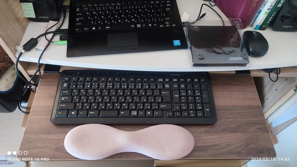 机が狭くてマウスが動かせないと、またトラックボール🖲️のマウスを購入した直後にたまたまニトリに寄った際に見つけた拡張デスク。マウス🖱️買わなくても良かったかも。