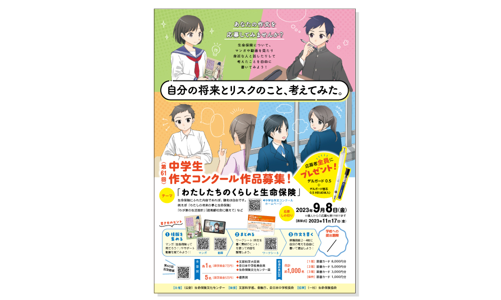 金融 応募多数!中学生向け 生命保険 作文コンクールポスター株式会社ブライト。