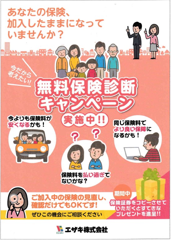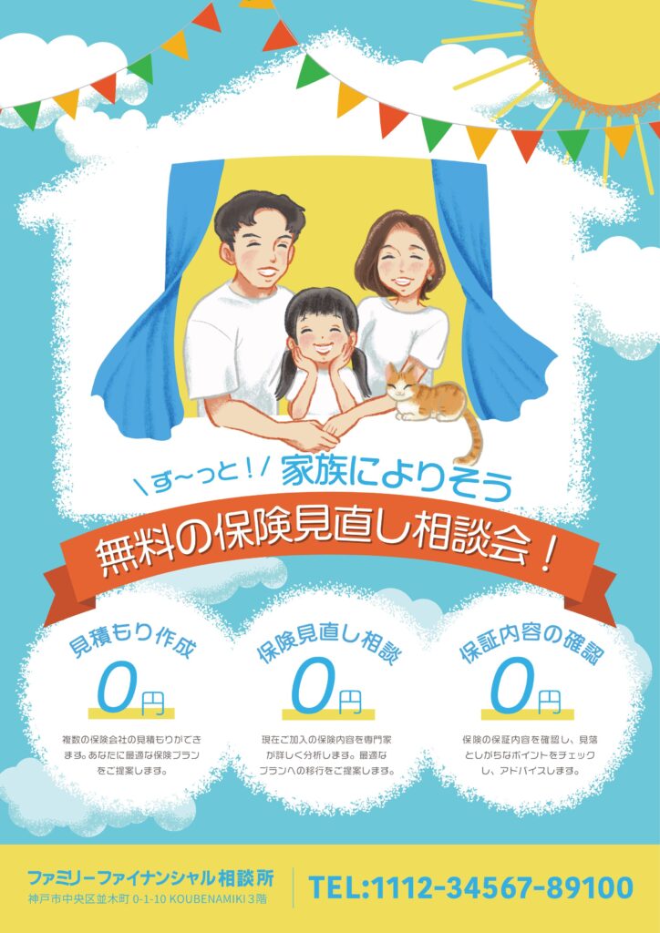 保険の無料見直し相談会のフライヤーデザイン – わだてるこTeruko Wada Illustration。