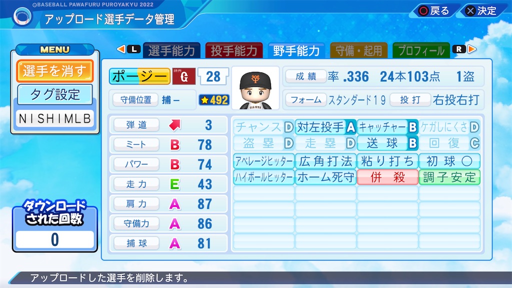 パワプロ2024 バスター・ポージー 2012年 パワナンバー - NishiのパワプロMLB査定ブログ。