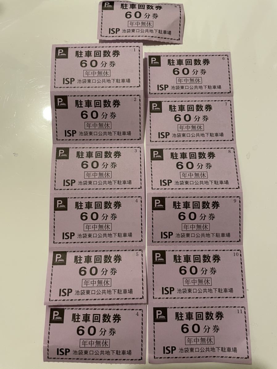 ISP 池袋東口公共地下駐車場駐車回数券60分券×16枚。
