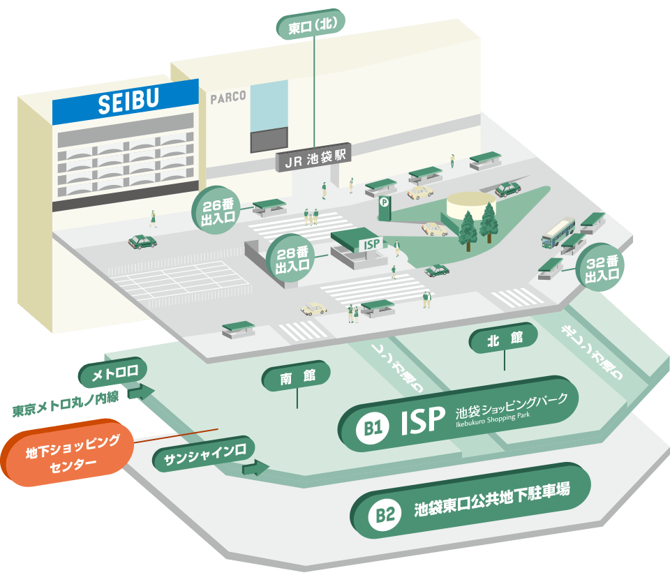 池袋西口都市計画公共地下駐車場池袋駅、池袋東武百貨店 直通。