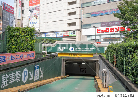池袋東口公共地下駐車場出口 夜 写真素材4425128- フォトライブラリ。