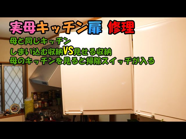 DIY 実母のキッチンの扉修理「しまい込む収納VS見せる収納」見比べて「掃除のやる気スイッチがONになる」 - YouTube。