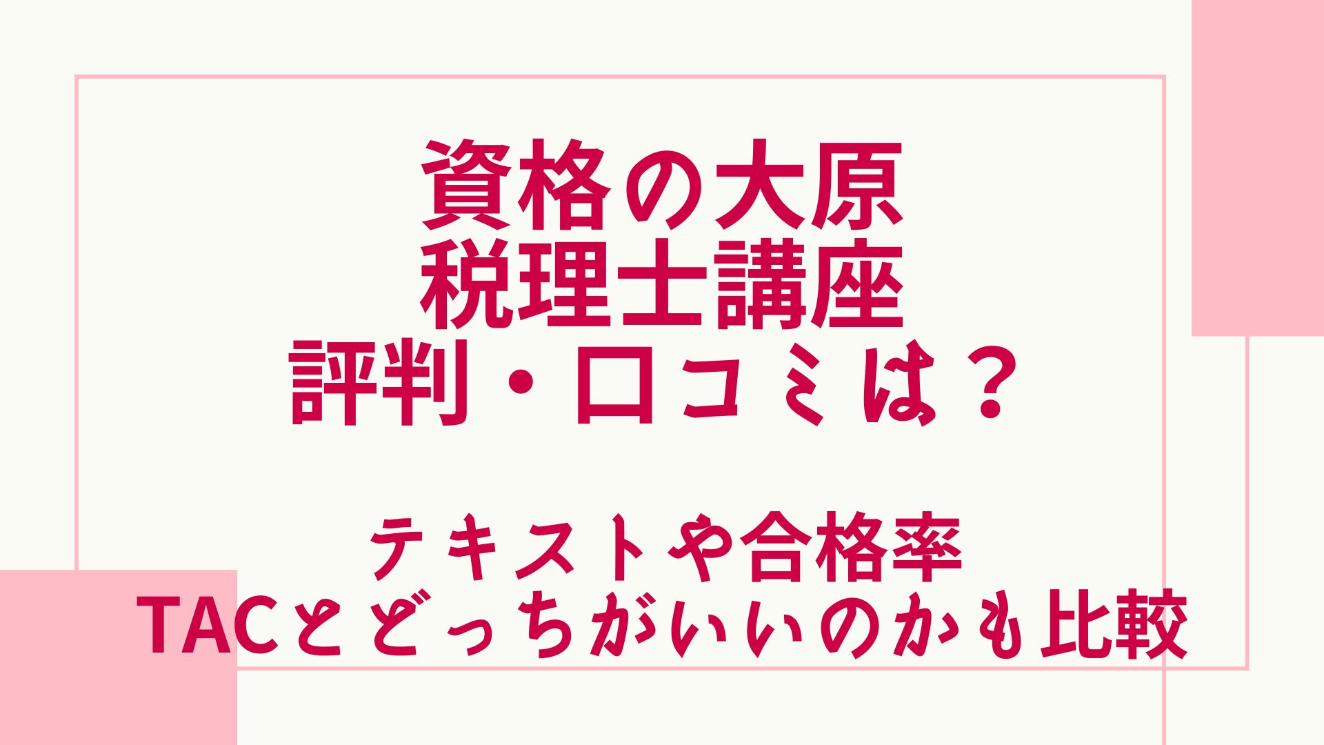 資格の大原の税理士講座の評判・口コミは?テキストや合格率、TACとどっちがいいのかも徹底比較!グッドスクール・資格取得情報比較。