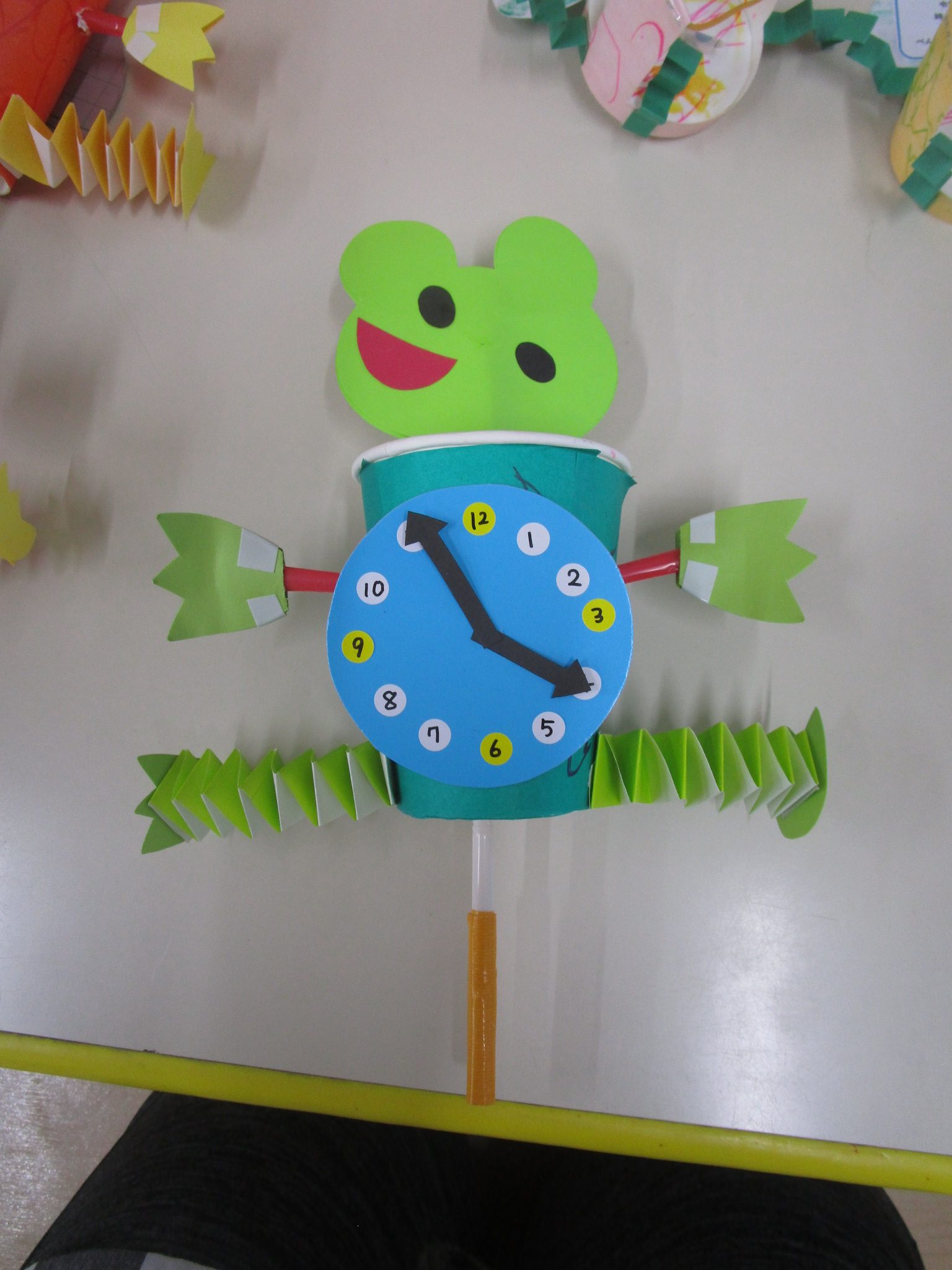 保育園 6月製作「時計」傘・紙コップ・折り紙の時計アイデア3種と簡単カエルの折り方保育士のお仕事静岡。