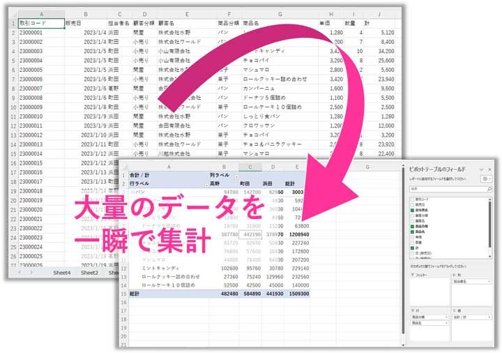エクセル時短 ピボットテーブルの基本を理解。大量のデータをさまざまな切り口で分析できるできるネット。