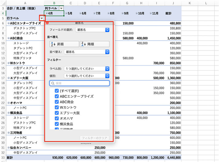 ピボットテーブルの活用・データの並べ替えと絞り込みをする方法 ソート フィルター スライサー- ヘルプ&ドキュメントセンター日報アプリのニッピ。