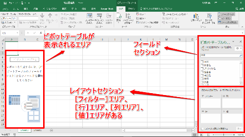Excel エクセル ピボットテーブルの使い方・作り方図解で初心者向け解説。
