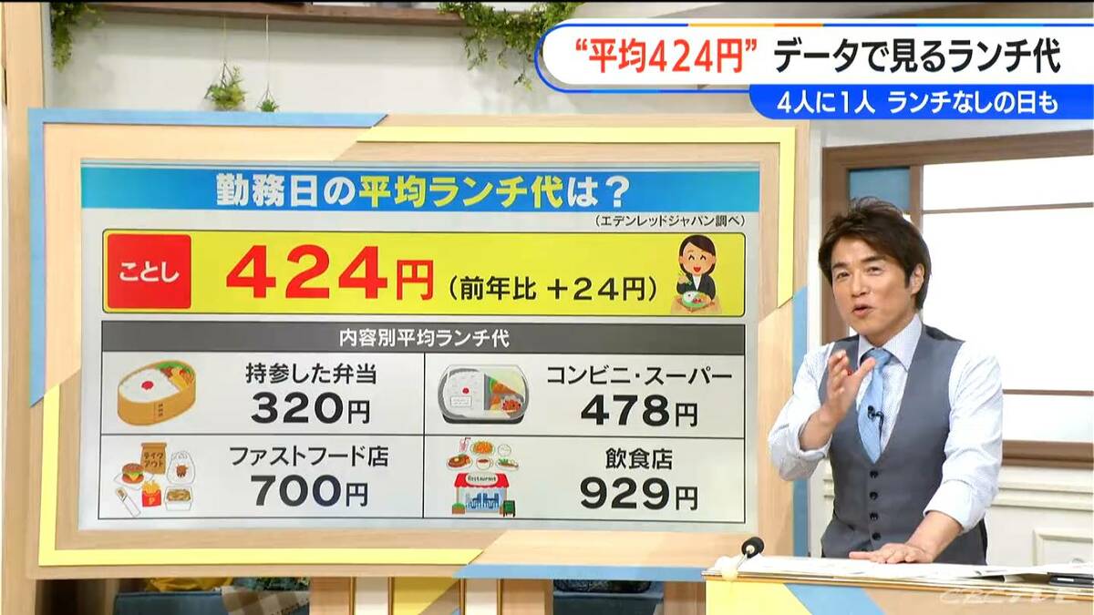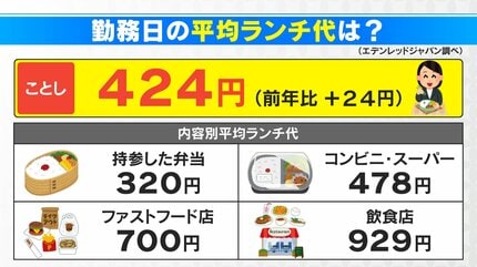 勤務日の平均ランチ代は「424円」 前年より24円アップ 物価高で“弁当持参の節約”や「週2回以上ランチを食べない」人も名古屋・愛知・岐阜・三重のニュース CBC newsCBC web。