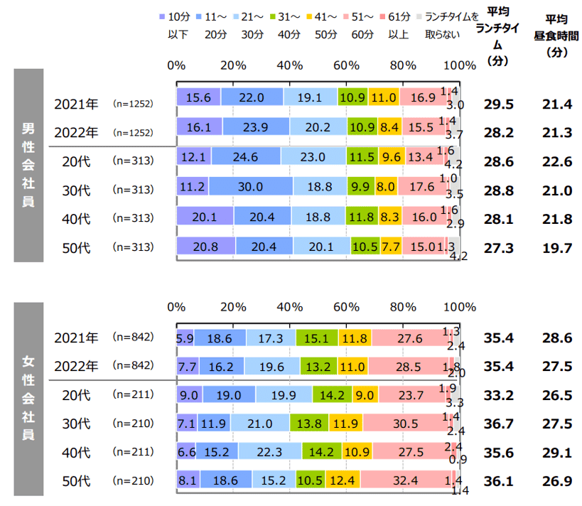 昼食時間は男性21.3分、女性27.5分 サラリーマンなどのランチタイム事情 不破雷蔵- エキスパート - Yahoo!ニュース。