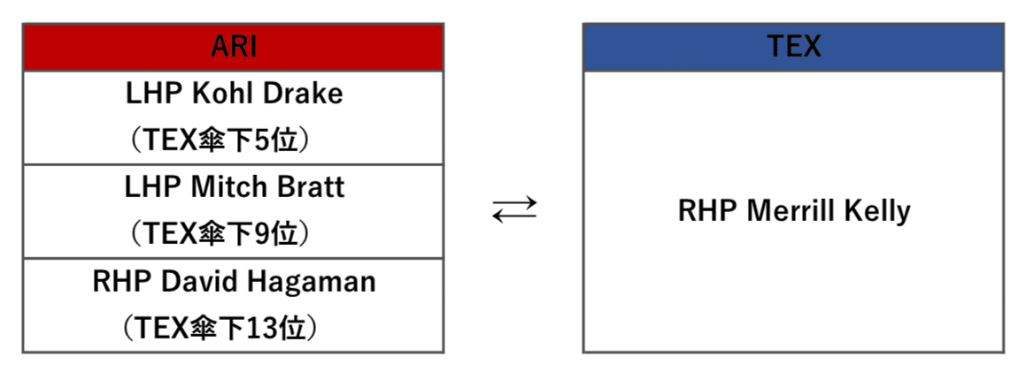 AZ→TEX Merrill Kellyトレード成立!あちん。
