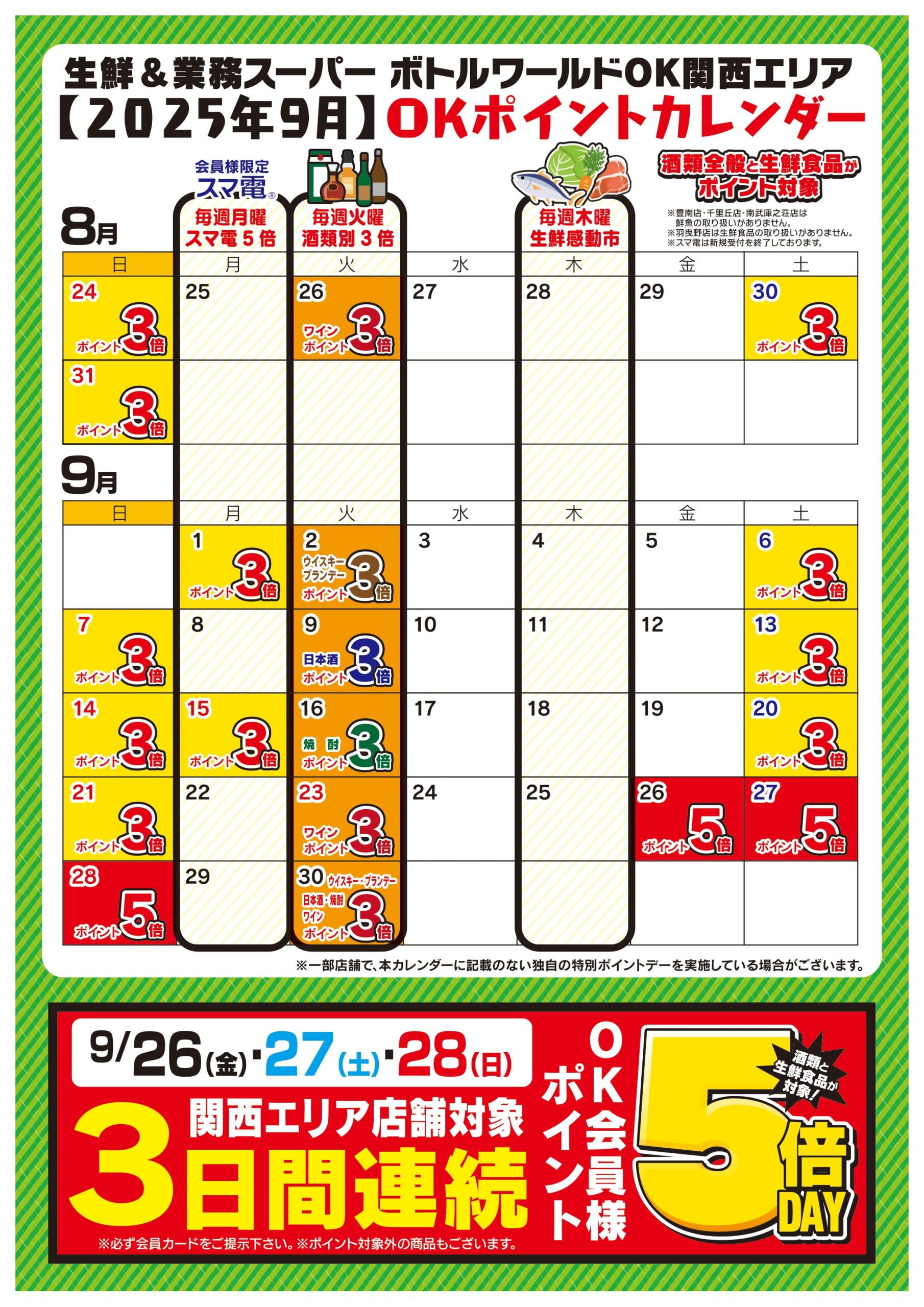 こんにちは、 株式会社ボトルワールドOKです 営業時間 朝☀️9時~夜✨9時 生鮮&業務スーパーボトルワールドOK 橿原神宮前店では12月15日木曜日~18日日曜日は 「2022年大晦日準備セール」と いたしまして、ポイント5倍デーを 開催中です🤗 御来店お待ちし。
