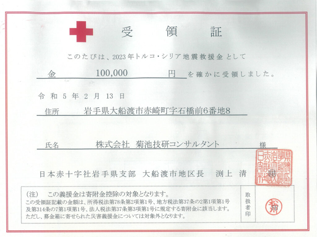 2023年トルコ・シリア地震救援金へ寄付しました – 株式会社 アースデザインコンサルタンツ。