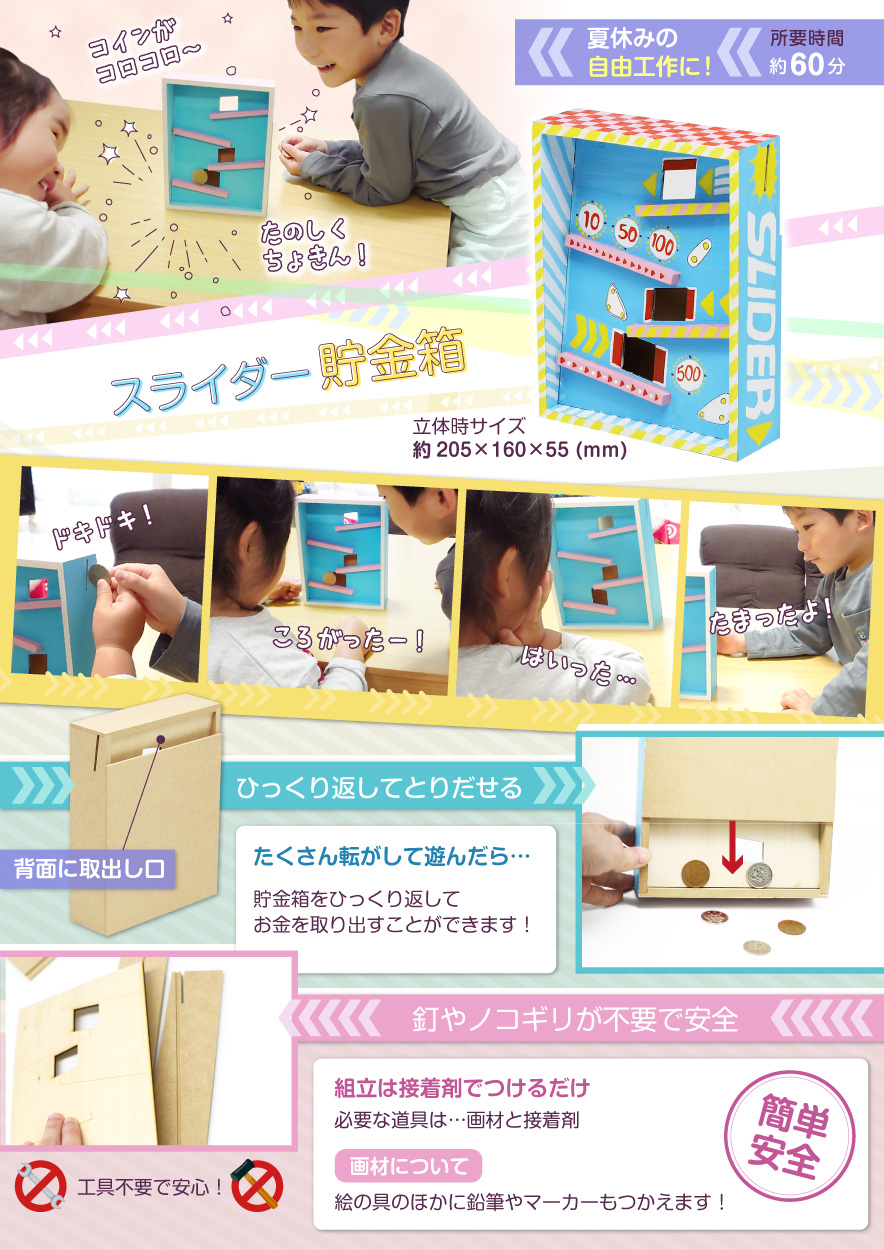 簡単工作キット スライダー貯金箱 貯金箱づくり教材商品案内図工・美術教材のクラフテリオ。