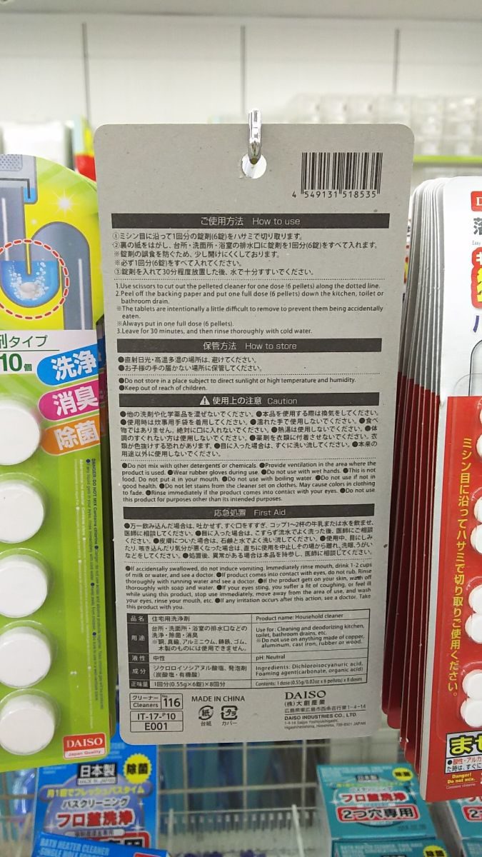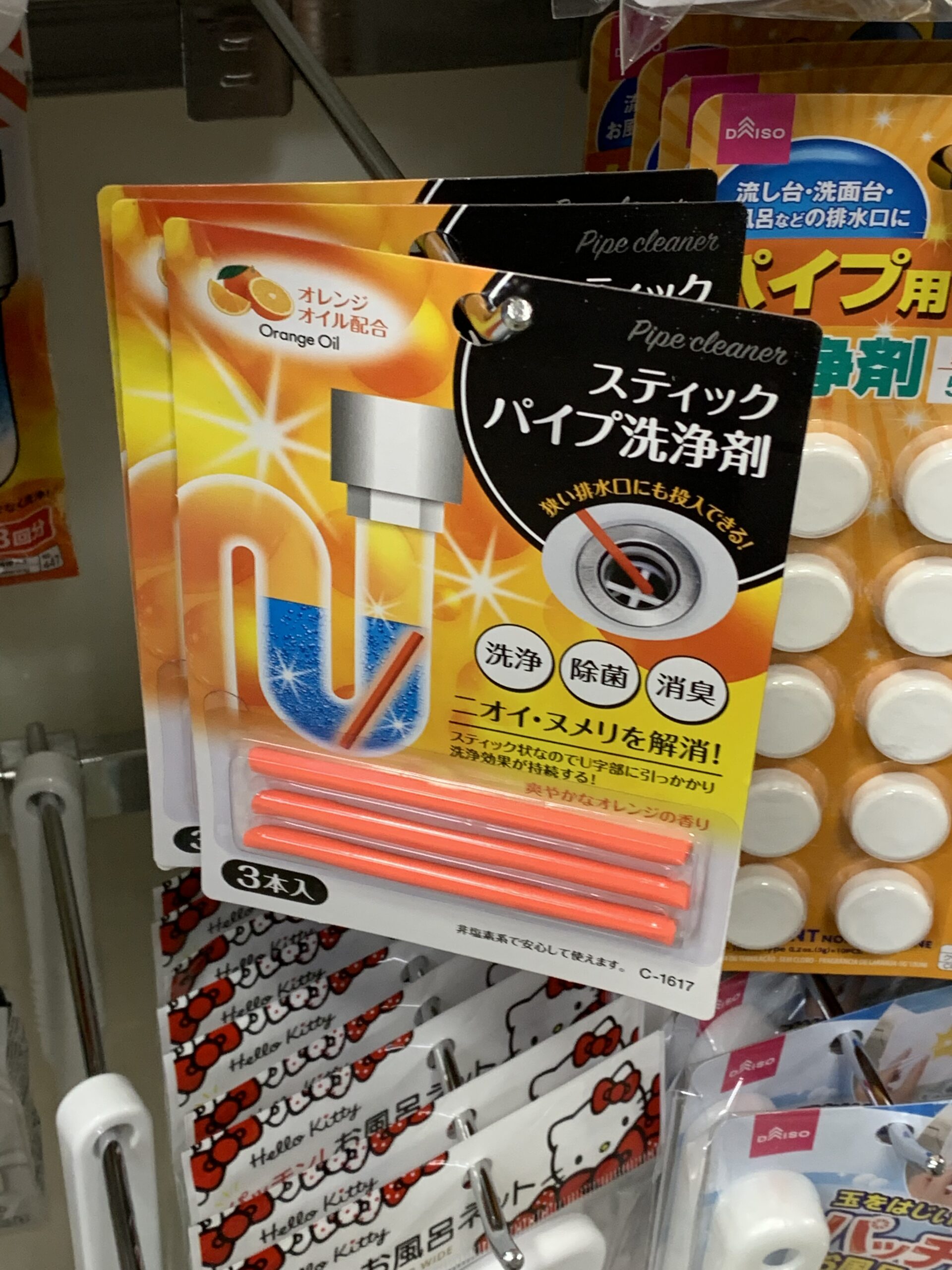 DAISO ダイソー 探険「スティックパイプ洗浄剤」およげ100円。