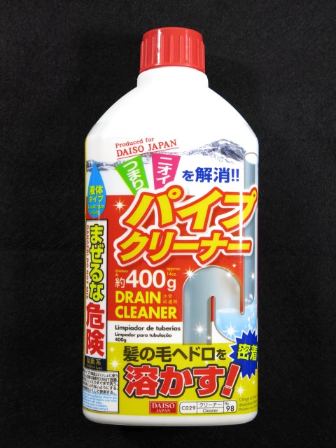 DAISOの掃除用品コーナーでみつけた 液体パイプクリーナー を買ってみました。 いわゆるパイプユニ - コスレベ。