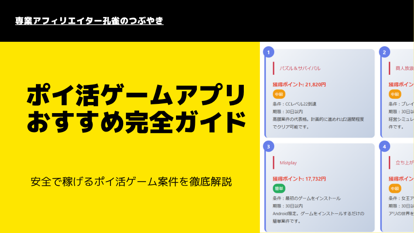 2025.10.10更新 ポイ活ゲームおすすめ案件35選&ポイント比較!実際にクリアできた案件から厳選!こちゃログ。